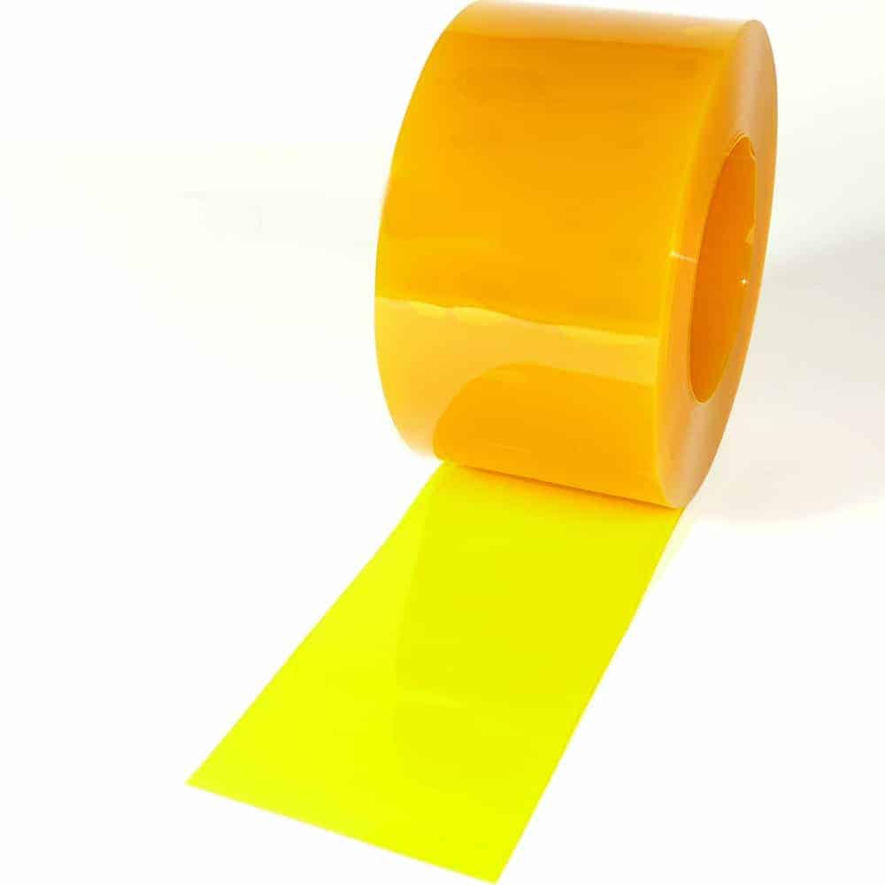 - PVC Stroken Gordijn Geel Transparant 200mm breed x 2mm dik op rol 50 meter.